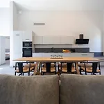 The apartment includes a dressing room and a fully equipped kitchen with an air conditioner for utmost comfort. The accommodation features a bathroom with a hairdryer, dressing gowns, and towels. Moreover, there is a walk-in shower and a washing machine as well.